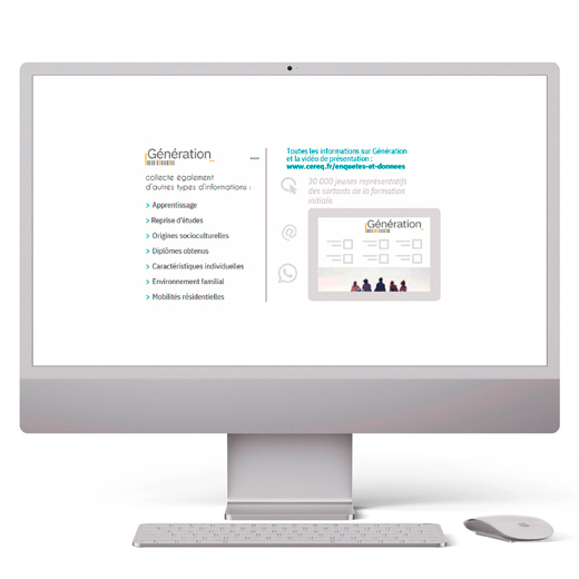 À la fin des années quatre-vingt-dix, le Céreq a mis en place un dispositif d’enquêtes original qui permet d’étudier l’accès à l’emploi des jeunes à l’issue de leur formation initiale. À intervalles réguliers (tous les 4 ans depuis la Génération 2013), une enquête est réalisée auprès d’une nouvelle cohorte de jeunes qui ont en commun d’être sortis du système éducatif la même année, quel que soit le niveau ou le domaine de formation atteint, d’où la notion de « Génération ».